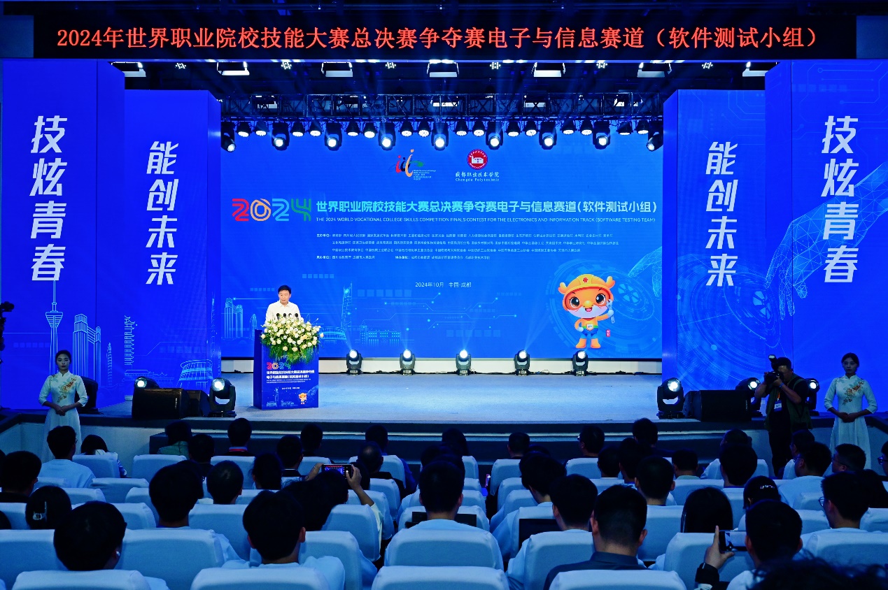 《教育导报》讯(记者 葛仁鑫)10月25日,2024年世界职业院校技能大赛总决赛争夺赛电子与信息赛道(软件测试小组)在成都职业技术学院开赛。省委教育工委委员,教育厅党组成员、副厅长石静在开幕式上讲话,并宣布开幕。
