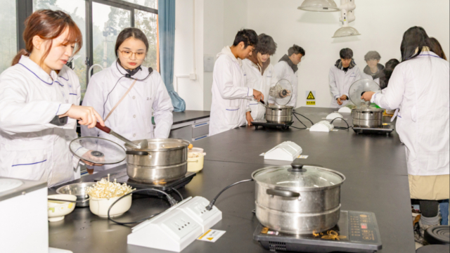 师生们的文创产品同样精彩纷呈。药学系展位上,茯苓、芍药、黄芩等中药材摇身一变,成了精致的冰箱贴、手串和创意绘画,将传统中医药文化与现代审美巧妙结合;美食文化成果展位主打“药食同源”理念,养生糕点、草本饮品等展现中华饮食文化的博大精深;医疗技术系展位则将纯天然植物萃取的口红、精油皂、香薰精油等校企融合成果搬上展台;学生文化成果展位,非遗扎染、绳编、手工牛皮纸包等展现着学生的创造力与匠心。
