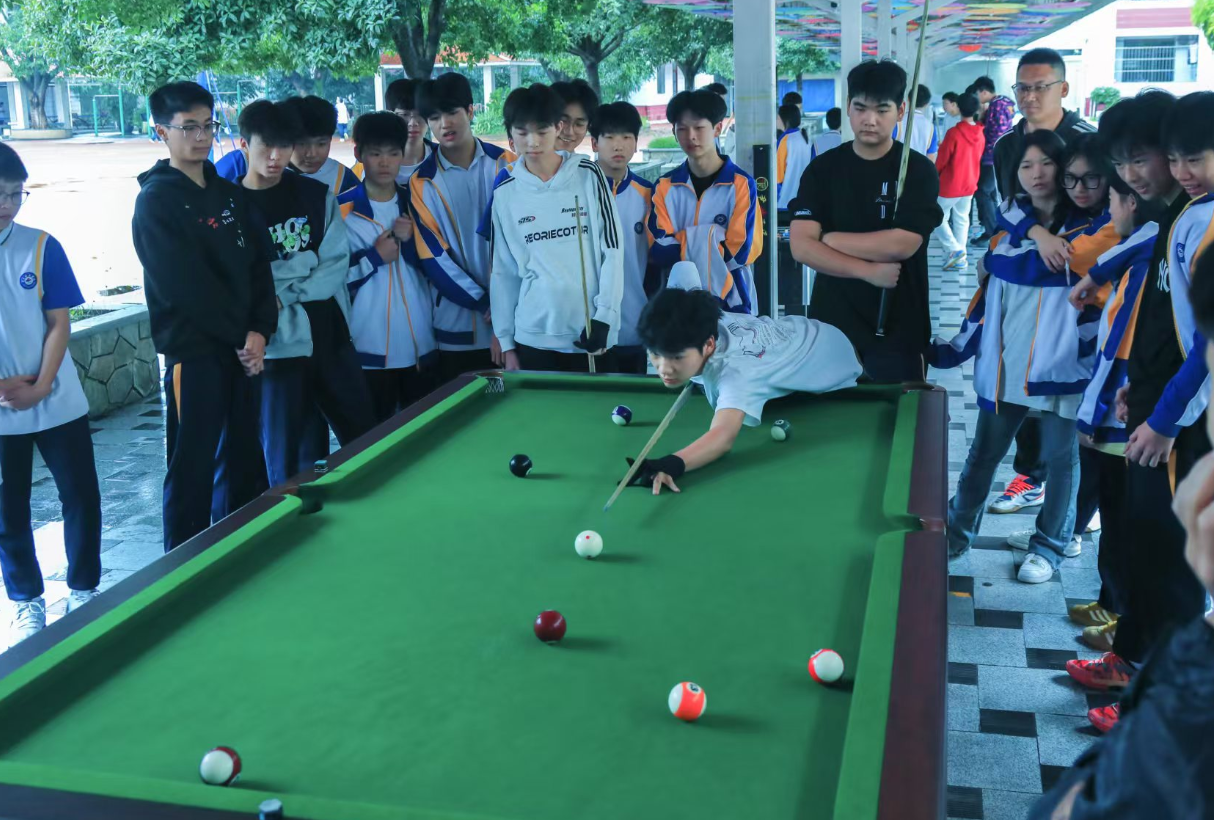 学校秉持“五育并举”育人理念,不断探索师生互动新形式,丰富校园文化生活,促进师生全面发展。为打破师生间的交流壁垒,营造轻松和谐的校园氛围,9月18日起,学校利用每天的课外活动时间,举办一场别开生面的中式八球台球比赛。比赛创新采用“师生自由组队、两人一组”的形式进行,共有7支教师队伍、24支学生队伍参赛。