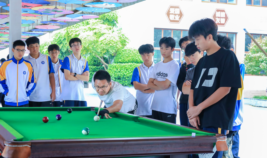 教师张勇感慨道:“平时和学生的交流多集中在学业上,这次通过台球比赛,能从另一个角度了解学生。师生切磋技艺,这种平等的协作让我感受到了不一样的师生情谊。”