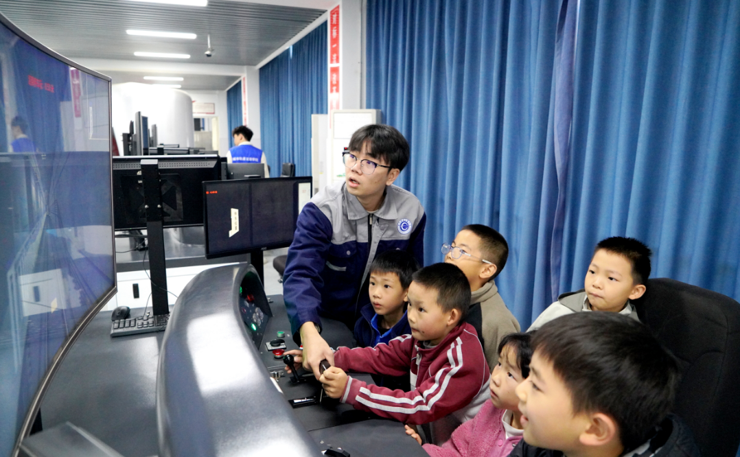 活动中,“小小司机”们走进动车组模拟驾驶实作考点,在大学生志愿者的引导下,亲身体验高铁与地铁模拟驾驶。手握操纵杆、紧盯信号屏,孩子们在逼真的场景中感受中国轨道交通的速度与科技魅力。