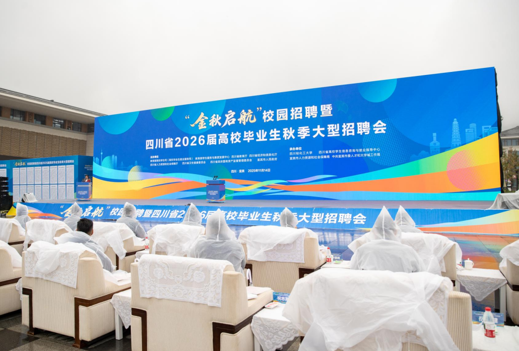 《教育导报》讯(记者 陈朝和 摄影报道)11月14日,四川省2026届高校毕业生秋季大型招聘会在四川轻化工大学宜宾校区启幕。本次招聘会由教育部高校学生司、教育部学生服务与素质发展中心、四川省教育厅等多部门联合主办,四川轻化工大学、四川省高校学生信息咨询与就业指导中心等单位承办,吸引省内外550余家优质单位线下设展,370余家用人单位通过“川e就—四川大学生就业服务平台”线上同步纳才,累计发布岗位2万余个,吸引全省高校1.2万余名毕业生奔赴求职,超8万人在线参与。