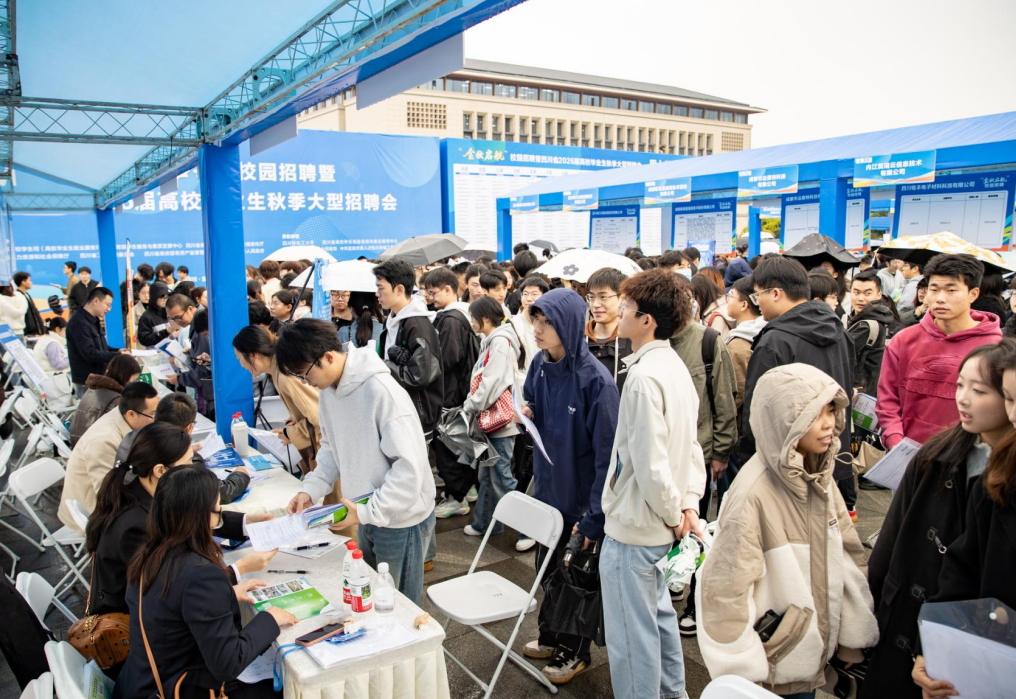 “线上+线下”融合招聘是本次活动的创新亮点。为便于全省高校毕业生求职就业,四川省教育厅在招聘会现场开设专区“直播带岗”,并在“川e就——四川大学生就业服务平台”开设了线上招聘活动专区,提供职位发布、简历筛选、在线面试、校企对接、在线签约等一站式功能服务。