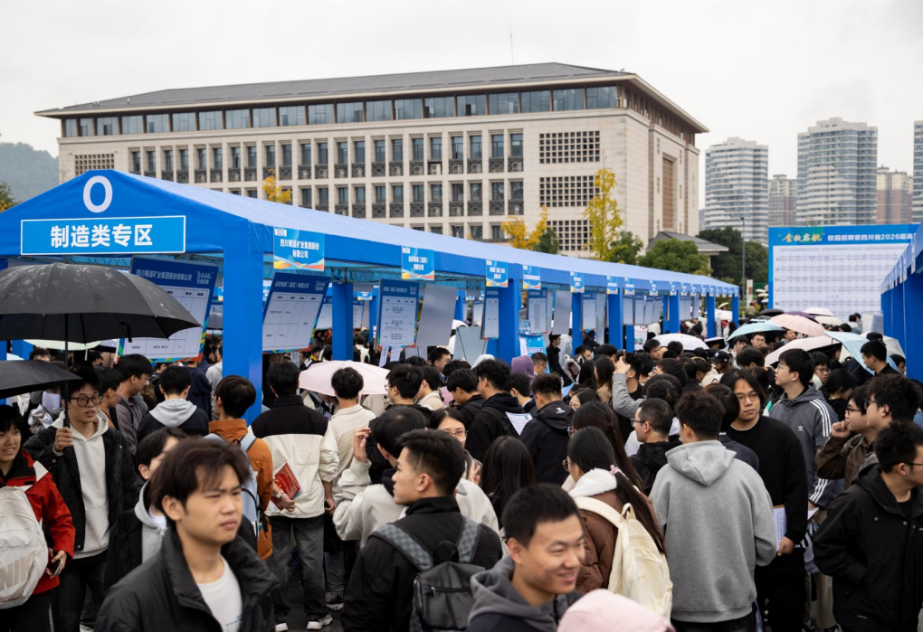 11月14日,四川省2026届高校毕业生秋季大型招聘会在四川轻化工大学宜宾校区启幕,一大批像王鑫一样的毕业生涌向招聘会场,在金秋时节冲刺就业机会。本次招聘会吸引了省内外550余家优质单位线下设展,线上同步纳才,累计发布岗位2万余个,吸引全省高校1.2万余名毕业生奔赴求职,超8万人在线参与。记者在现场感受到了应届毕业生和用人单位之间“双向奔赴”的热切氛围。