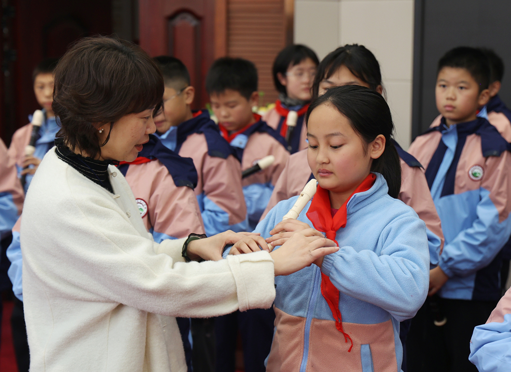 如何让每个孩子都能触摸音乐?程君将目光投向竖笛——成本低廉、易学易携,是推进普惠美育的理想载体。她全力推动“竖笛进课堂”项目,即便初期不乏质疑,仍坚持利用课余时间辅导学生。终于,清澈的笛音在省级赛台婉转飘扬,长宁学子斩获一等奖。