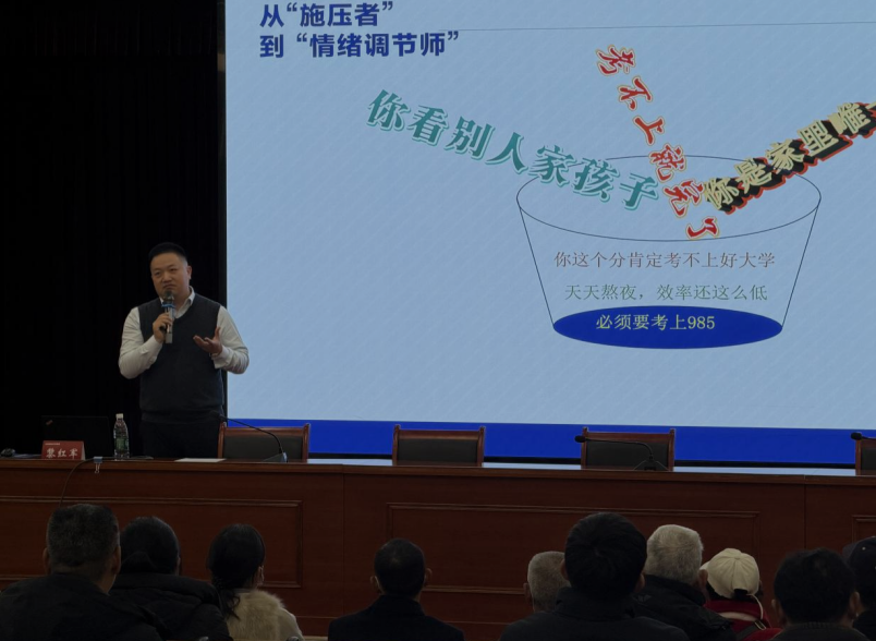 12月9日,首场讲座于西华师范大学附属巴中实验中学面向高三家长及学生开讲。蜀教云首席咨询师黎红军在题为《从“焦虑的旁观者”到“高效支持者”》的分享中指出,家长需实现三大关键角色转变:从“施压者”转为“情绪调节师”;从“后勤部长”升级为“战略参谋官”;从“信息盲”成长为“情报分析师”。讲座深入剖析升学误区,梳理多元路径,旨在引导家长将焦虑转化为清晰行动,营造积极理性的备考支持系统。活动通过文轩优学平台同步直播,扩展了服务的覆盖面与即时性。