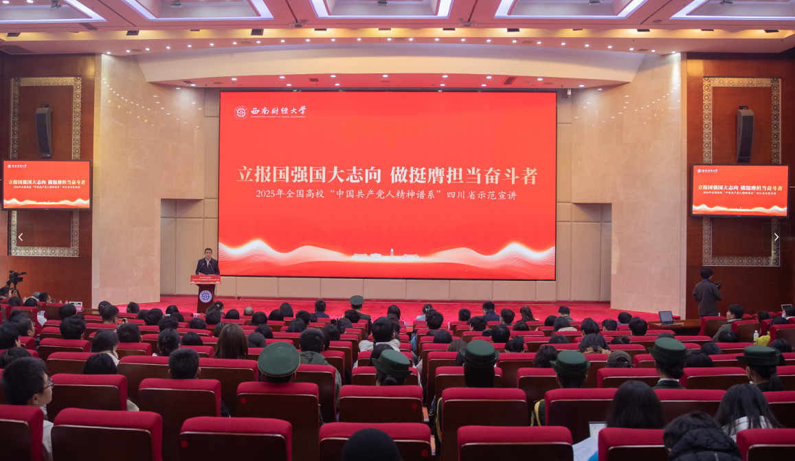 《教育导报》讯(记者 葛仁鑫 摄影报道)12月26日,由教育部思想政治工作司指导,四川省委教育工委主办,西南财经大学承办的2025年全国高校“中国共产党人精神谱系”四川省示范宣讲活动在西南财经大学举行。四川大学、电子科技大学、西南交通大学、西南财经大学、成都中医药大学、成都师范学院等校300余名师生代表齐聚一堂,学思践悟中国共产党人精神谱系。