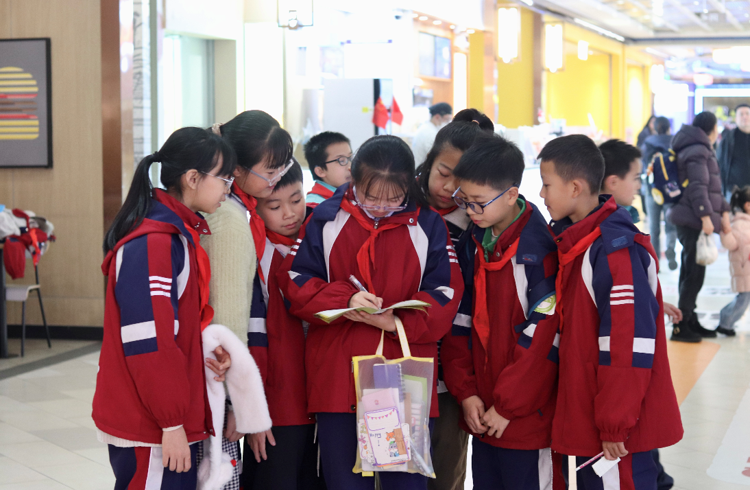 活动中,思政教育贯穿始终。学生们撰写元旦文明祝福语、梳理商场文明行为规范,围绕文明、环保主题设计创意标识,将语文表达、美术创意与品德修养深度融合。同时,在真实场景中感受成都元旦节的民俗风情,深化文化认知、增强文化自信。
