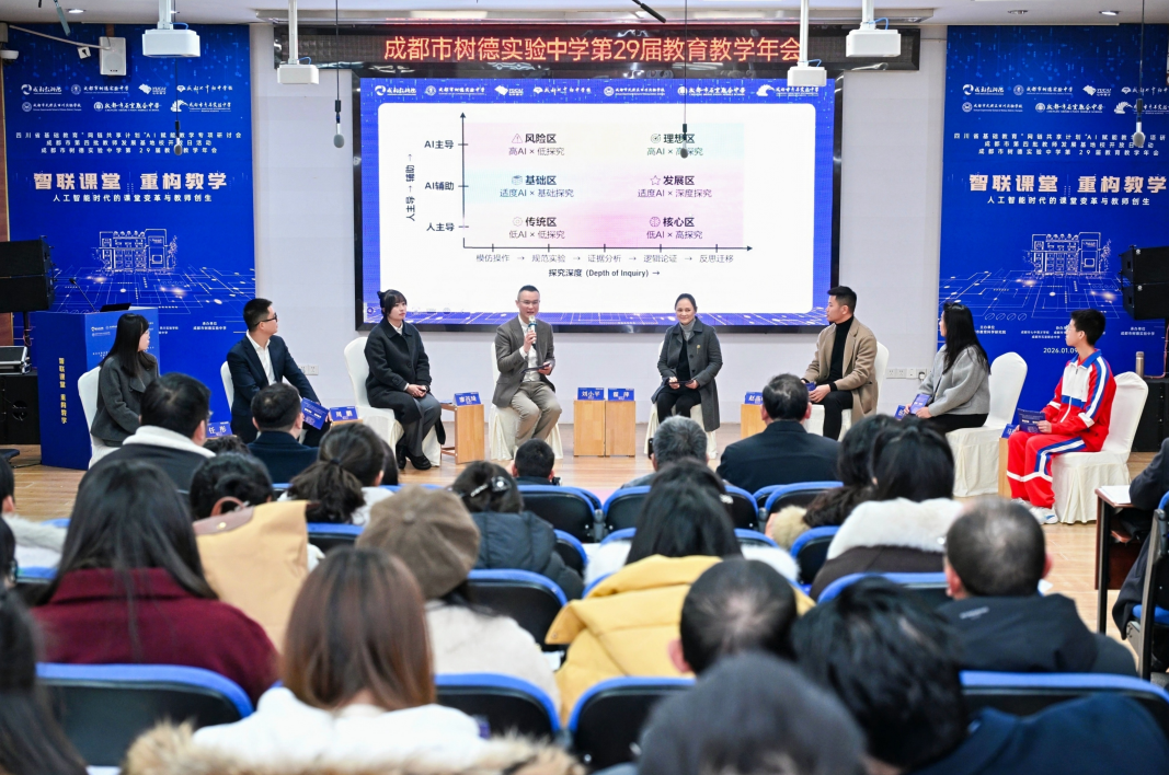 《教育导报》讯(陈林)1月9日,四川省基础教育“网链共享计划”AI赋能教学专项研讨会、成都市第四批教师发展基地校开放日活动暨成都市树德实验中学第29届教育教学研讨会在蓉城同步启幕。本次活动以“智联课堂 重构教学——人工智能时代的课堂变革与教师创生”为主题,汇聚省、市、区教育主管部门领导、高校专家学者、全省网链计划领军学校代表等,通过理念引领、课例展示、深度研讨、实践分享等多元形式,共绘新时代教育高质量发展蓝图。省委教育工委委员、教育厅党组成员、副厅长冯永刚参加会议。