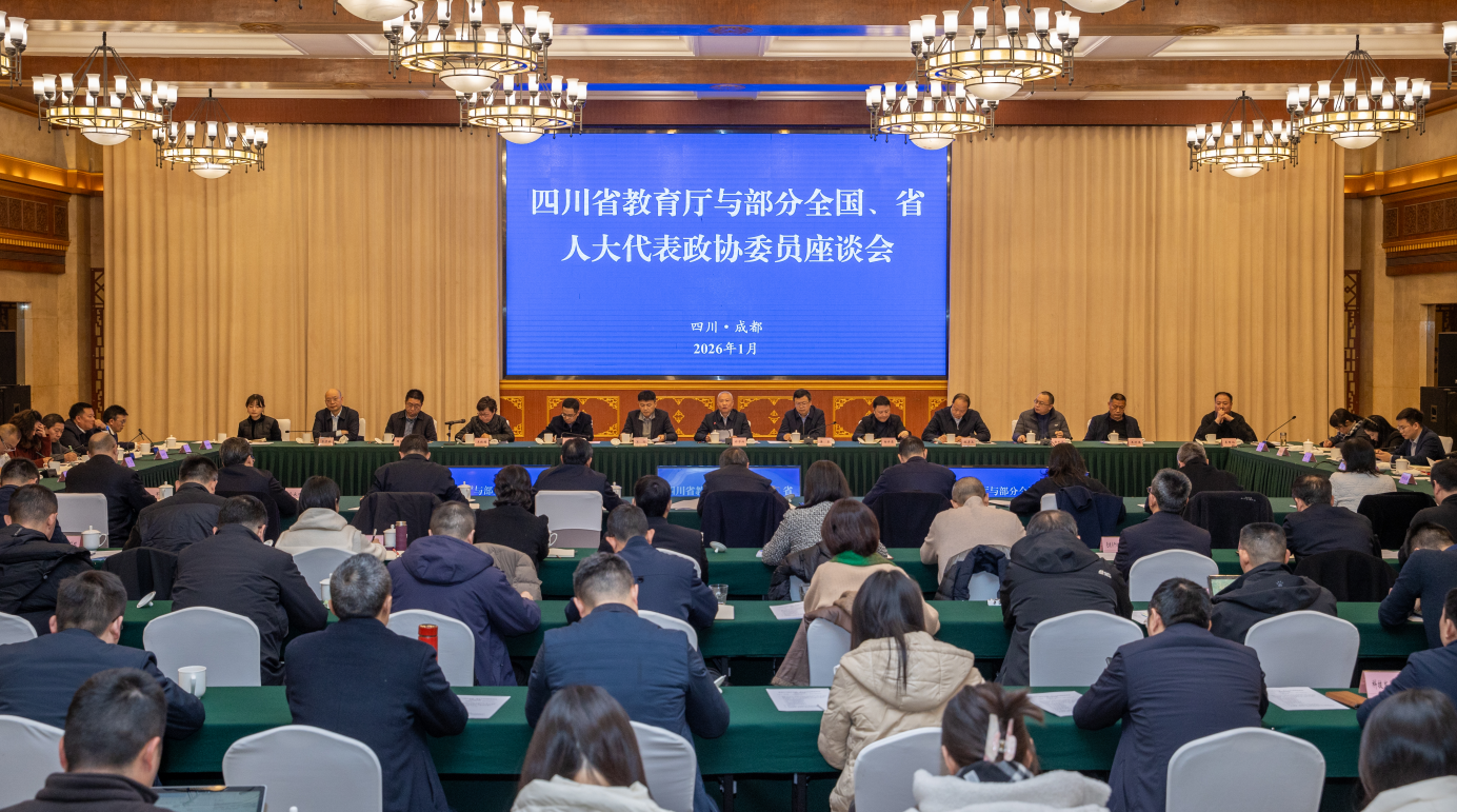 《教育导报》讯(记者 何元凯 陈朝和 摄影报道)1月23日,教育厅召开2026年代表委员座谈会,邀请部分在川全国和省人大代表、政协委员座谈交流。省委教育工委书记,教育厅党组书记、厅长陈冠松出席会议并讲话。省政协常委、教育委主任,民革四川省委会副主委郑学炳;省人大教科文卫委副主任委员黄勇,以及省政府办公厅有关处室负责同志应邀出席。省委教育工委副书记、教育厅党组成员张澜涛主持会议并通报“十四五”教育改革发展、“十五五”教育规划编制和2025年建议提案办理情况。