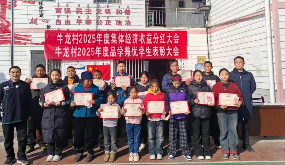 分红大会当天,牛龙村一年一度的品学兼优学生表彰会也同步举行。驻村以来,黄玉林不仅通过“真金白银”的产业促进强村富民,还时刻把村里“下一代”的教育放在心上。他广泛联系社会各界力量,连续3年为品学兼优和困难学子发放奖助学金,累计8.8万元。
