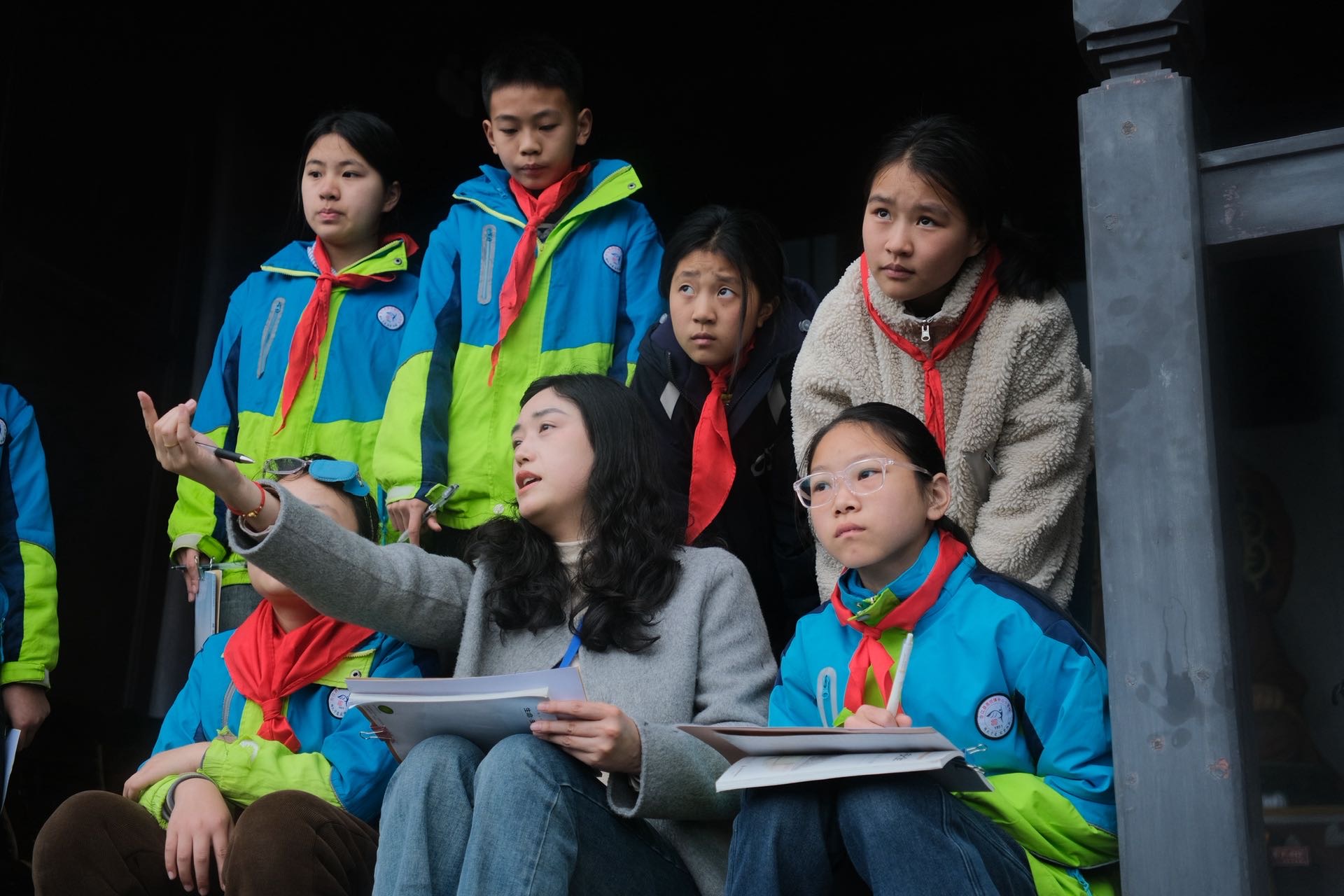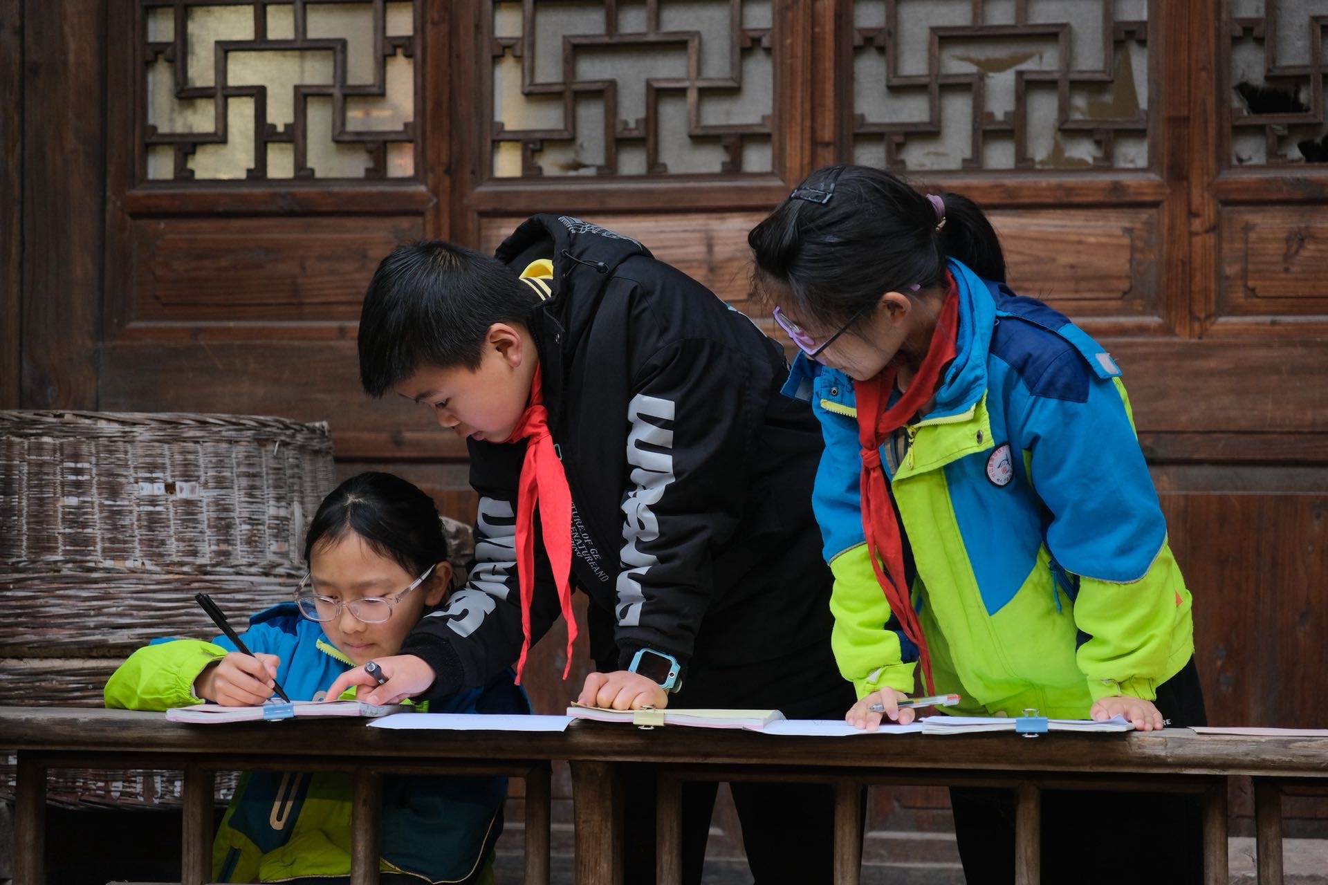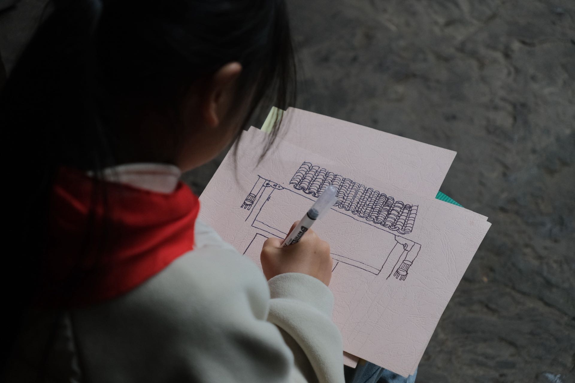 “不同年代的窗户有不一样的结构和造型,在画的时候线条也有所不同。”在学校美术老师的指导下,孩子们漫步在青石板路上,观察着古建筑门窗雕花的细腻纹路、古街院落的层次布局,聆听着古镇的历史故事与民风民俗。大家围坐屋檐下,凝神观察、细心勾勒,通过“匠笔画”的独特技法,描绘古街的一砖一瓦、一檐一壁。