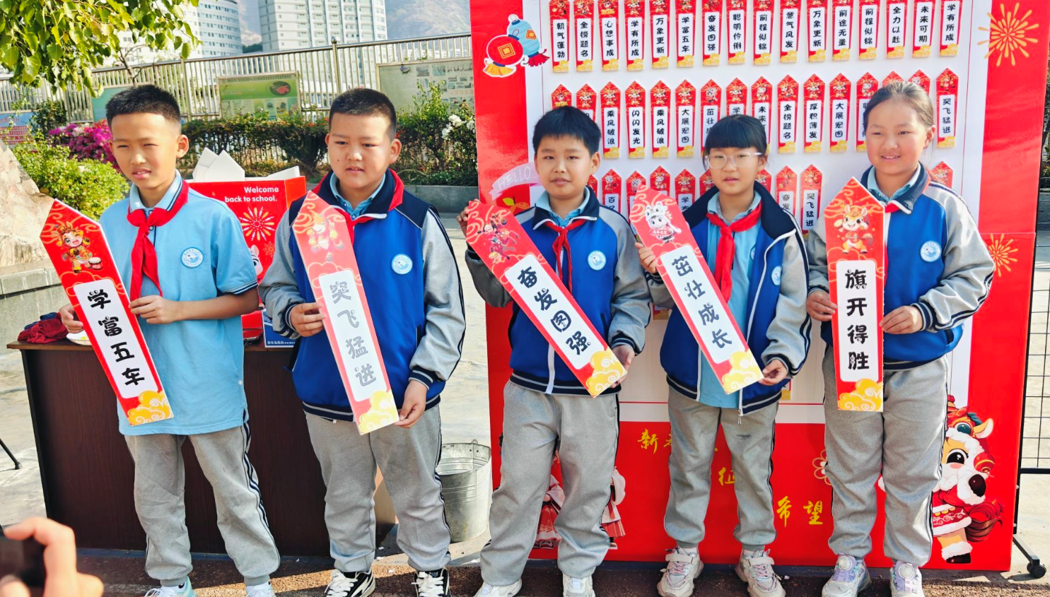 学校创新设置马年福气签、插春、盼春、点春四大主题迎新体验区,将传统文化、劳动教育、美育实践与成长教育有机融合,让学生在沉浸式互动体验中感受校园温度、种下成长心愿。