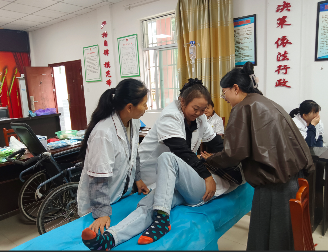 以精准对接为前提,把培训课堂搬到群众家门口。昭化职高坚持“群众需要什么就培训什么”的原则,主动下沉一线对接需求。针对磨滩镇留守老人多、养老服务需求旺盛的民情,学校于2025年10月开办养老护理员技能培训班,选派4名骨干教师携带专业教学设备送教下乡,培训紧扣国家职业技能标准,采用“理论+实操”一体化模式,将老年人心理关怀、安全照护等实用内容纳入授课内容;实操环节依托镇卫生院、敬老院开展临床实习,让群众在“家门口”学到真本领。“老师手把手教我们为老人翻身、测量血压、应急救护,都是实打实的本领。”45岁的学员李大姐过去靠打零工维持生计,如今凭借一技之长在居家照护岗位实现稳定增收,真正实现了“技能在手、就业不愁”。