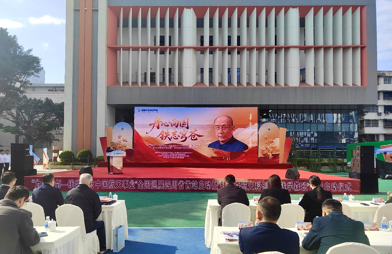 《教育导报》讯(万小萌 何东波) 3月26日,由上海交通大学钱学森图书馆主办,成都市金牛区教育局、成都市铁路中学校承办的“为国铸剑——钱学森与中国航天事业”全国巡展四川省首站启动暨“钱学森航天科创馆”“钱学森班”建设启动仪式,在成都市铁路中学校举行。