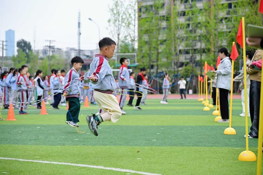 《教育导报》讯(记者 马晓冰 实习生 蒲竞芝)“二(2)班加油,你们是最棒的!”操场上,“拉拉队”的加油声此起彼伏,正在进行“1分钟跳绳比赛”的选手们也毫不懈怠,摇绳、跳跃,生怕节奏乱了出现停顿,脸上写满专注。