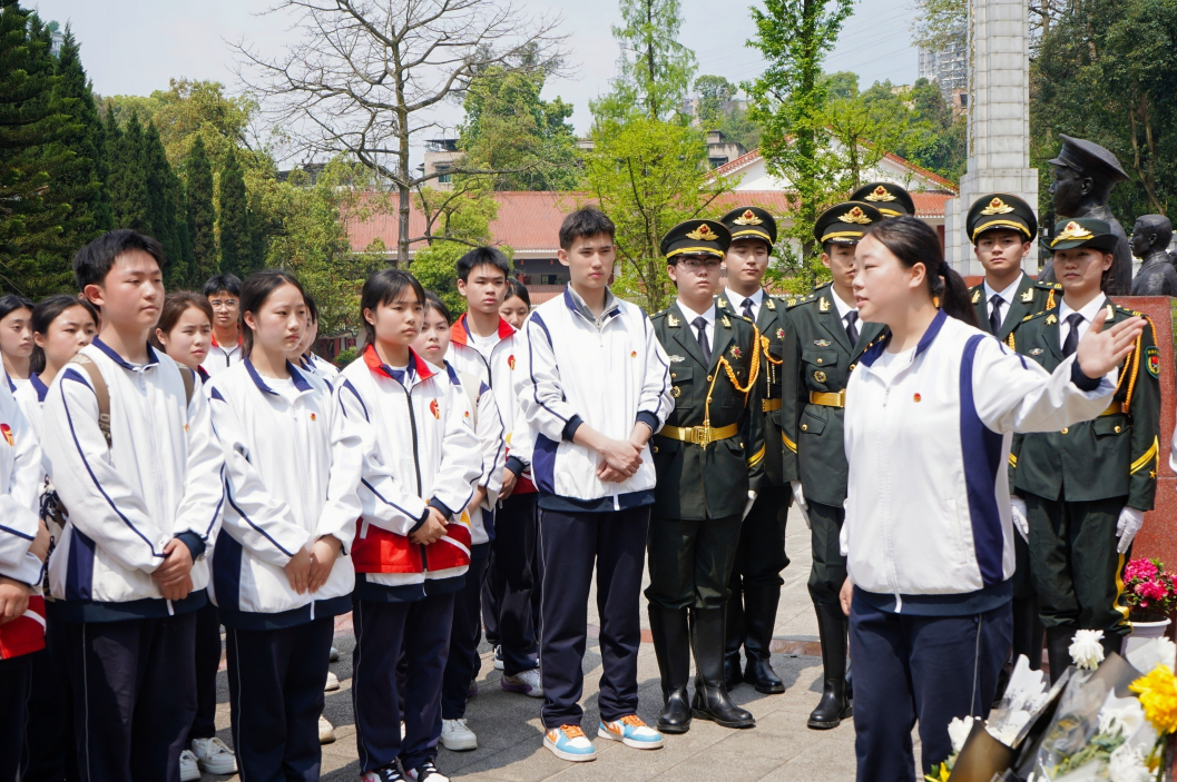 缅怀先烈承遗志,爱国情怀心中记。抵达流杯池公园后,全体师生在烈士纪念碑前整齐列队,举行了庄重的缅怀先烈仪式。学生们向烈士纪念碑敬献了鲜花,并参观了烈士纪念馆。通过一件件珍贵的文物、一幅幅生动的图片、一段段感人的故事,学生们直观感受到了革命先烈的爱国精神与奉献情怀。