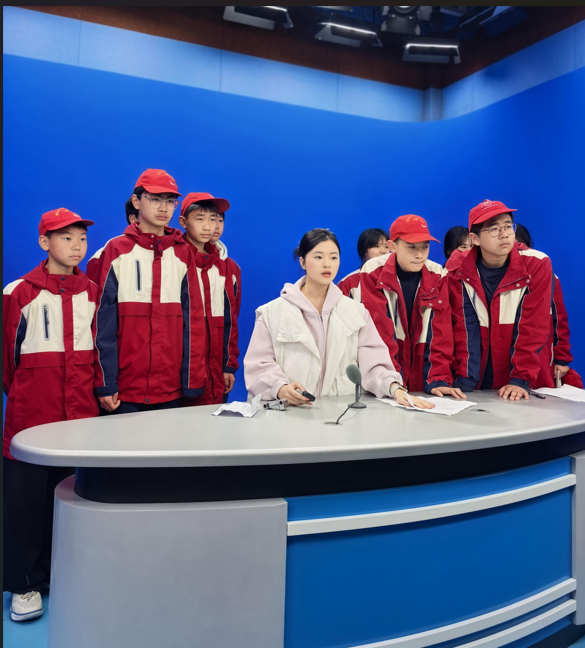 学生在犍为县融媒体中心演播室体验新闻主播。
