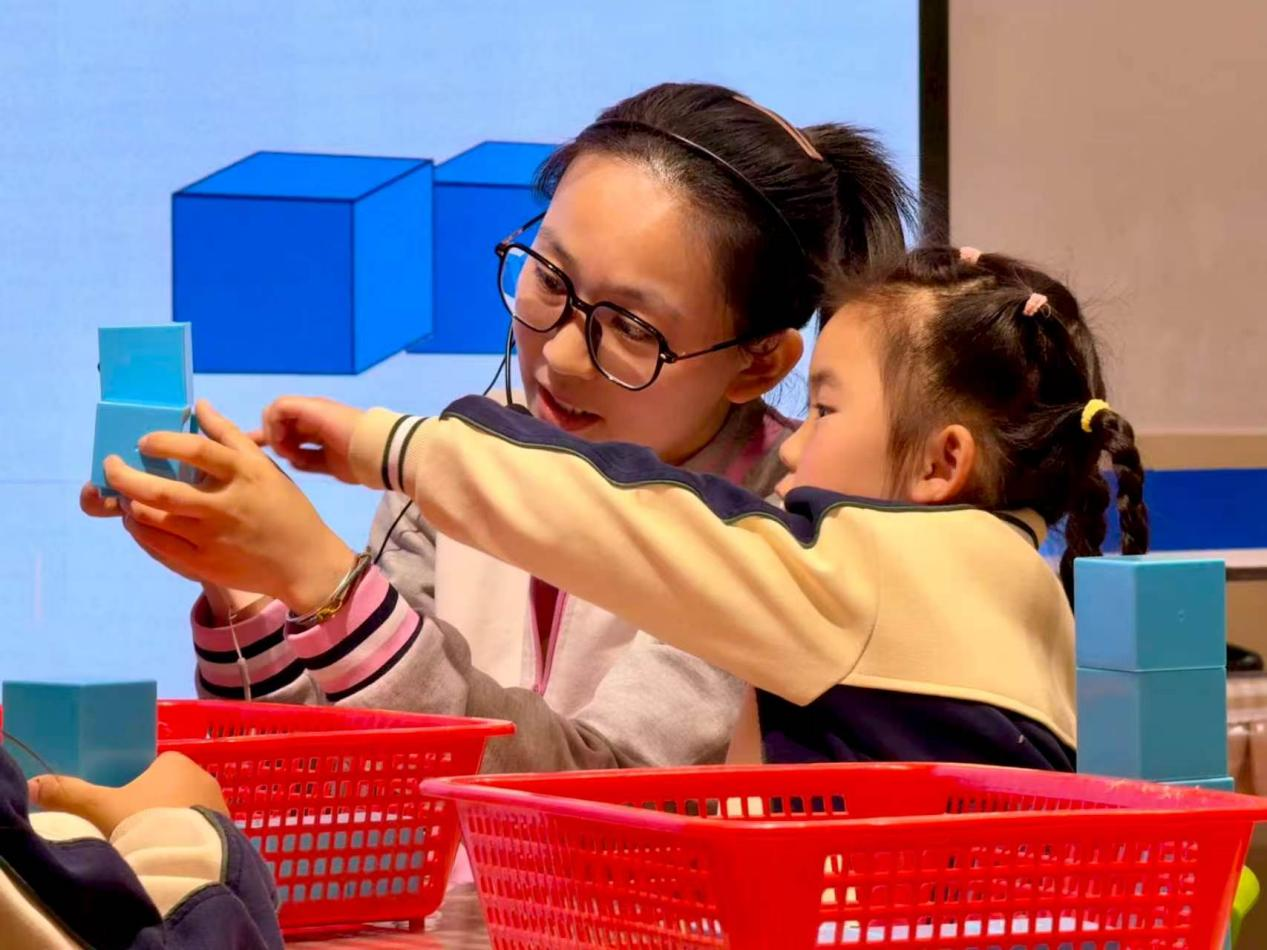 同样感触颇深的还有下两镇中心幼儿园的教师熊雪如。她带领中班孩子“帮国王摸月亮”,在故事情境中感知空间方位。“当孩子兴奋地喊出‘月亮在我的上面’时,我突然明白,数学不是告诉孩子答案,而是陪他们一起寻找答案。”熊雪如说,这次展评让她重新理解了“做中学、玩中学、生活中学”的真正含义。